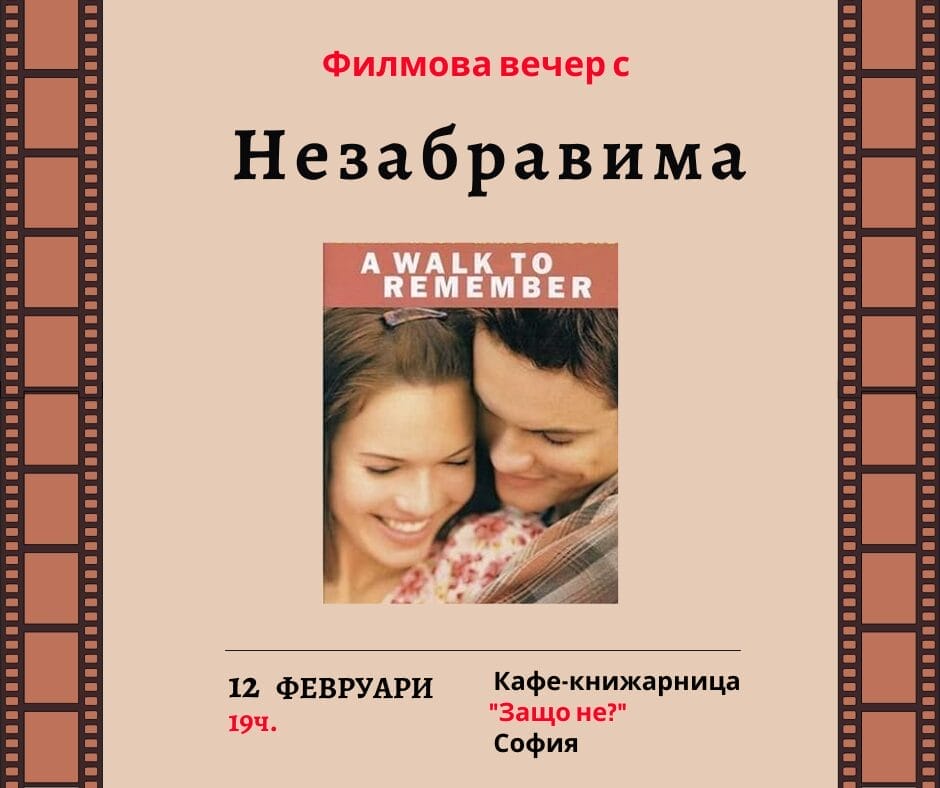 На 12.02.2024 от 19.00 ч. Кафе-книжарница „Защо не?“ ви кани на филмова вечер с „Незабравима“