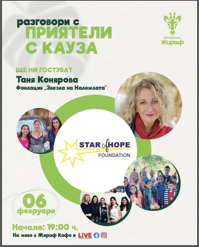 На 06.02.2024 г. от 19 ч. „Приятели с кауза“ ви канят на разговор с Таня Конярова от Фондация „Звеза на Надеждата“.