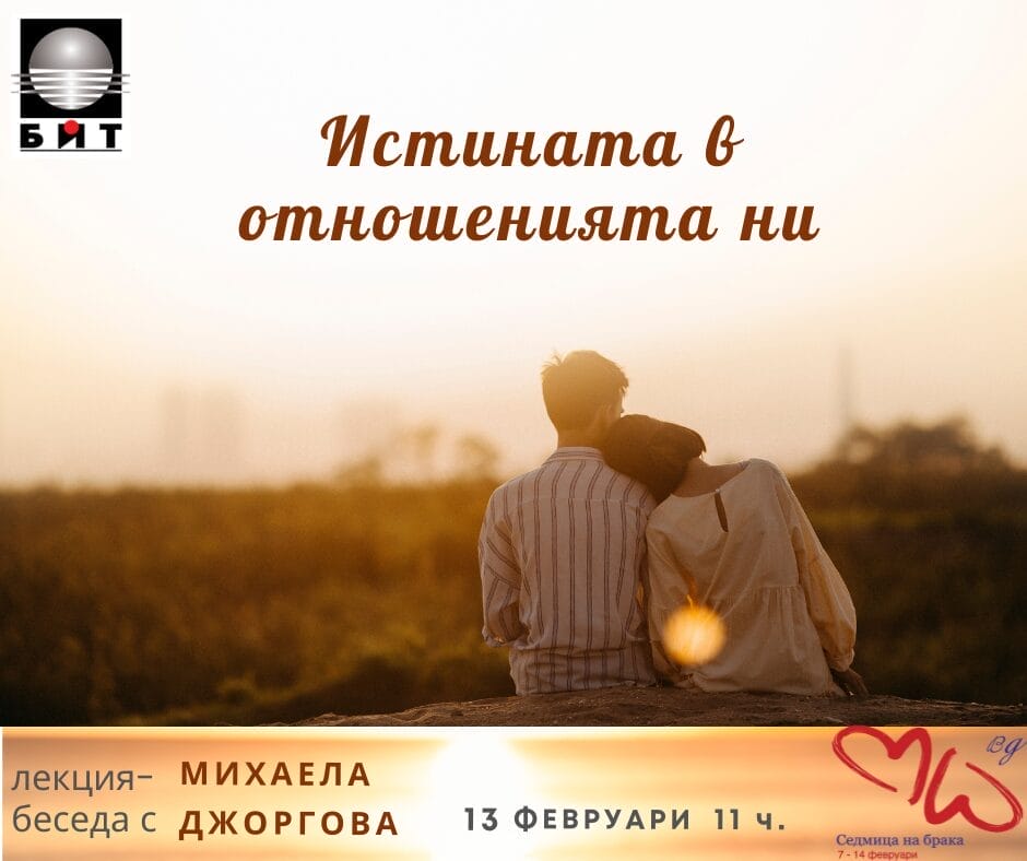 На 13.02.2025 г. от 11:00 ч. в столичния Университет по библиотекознание и информационни технологии (УНИБИТ) ще се проведе лекция-беседа на тема „Истината в отношенията ни“. По време на лекцията ще бъдат разгледани въпроси като: кога истината може да бъде трудна; как да се справяме с нея, когато боли; как да изразяваме истината с емпатия и уважение и още. Повече информация за събитието оттук
