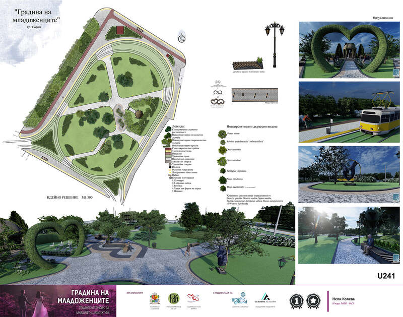 Втора награда – плакет и стипендия от Leader’s Academy получи предложението на Мила Александрова – III курс ЛАЛП, УАСГ и Никол Христова- III курс ЛАЛП, УАСГ, при Трета награда – плакет взеха Аделина Първанова – V курс ЛА, ЛТУ и Десислава Грозданова – дипломант ЛА, ЛТУ. Специалната награда на Graphic Ground за графично представяне бе присъдена на Нели Колева.