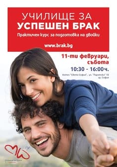 София 09.02.2017г.На 11 февруари, в столицата, по време на Седмицата на брака, ще стартира първият курс на Училище за успешен брак.